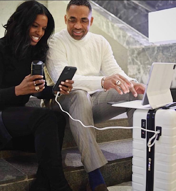 Omnia Luggage is designed to revolutionize travel with innovative features like an insulated flask, fold-away table, charging port, TSA locks, and more.